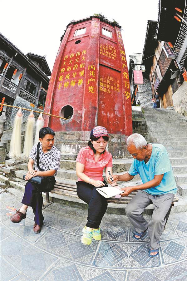 记者在洪安镇采访老居民